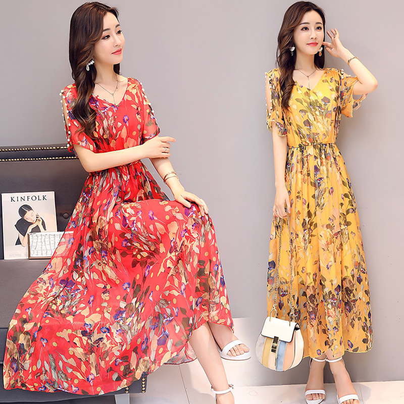 2017夏新款女裝雪紡連衣裙中..