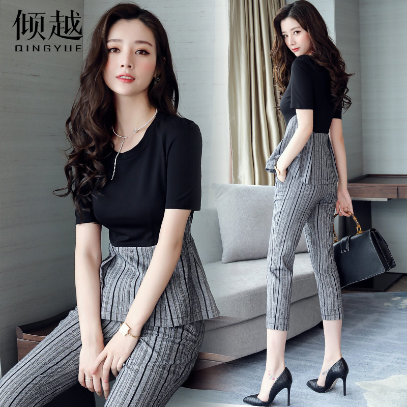 套裝裙女2017夏季新款短袖網..