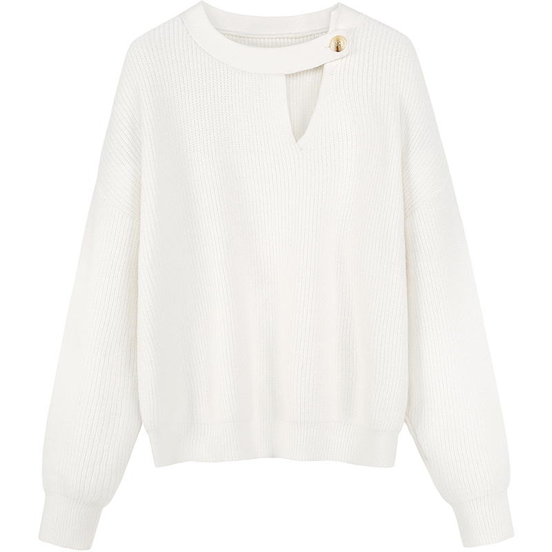 MG小象套頭白色毛針織衫女性感長袖秋冬2018新款心機寬松chic上衣