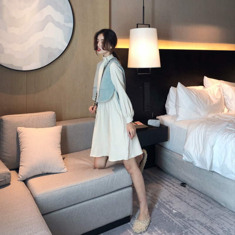 2018秋冬新款時尚呢子馬甲高腰中長款連衣裙網紅套裝chic兩件套女