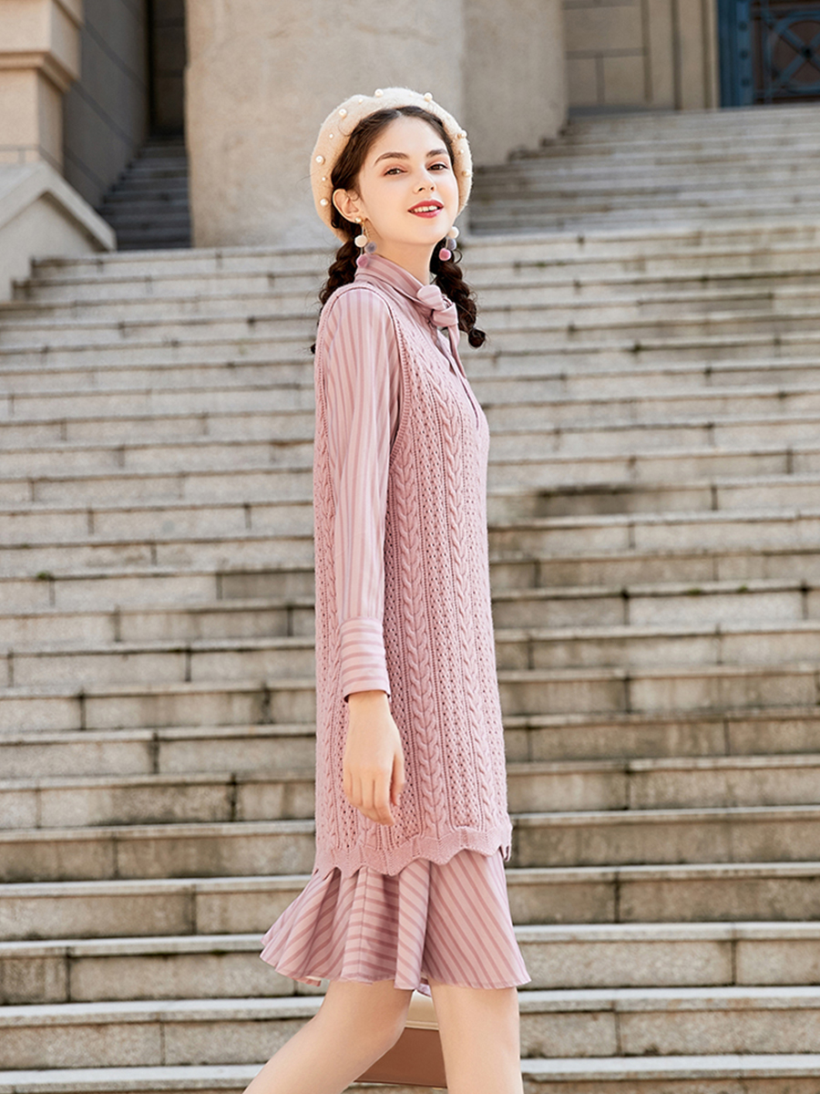 襯衫裙-粉紅色|針織背心-粉紅色