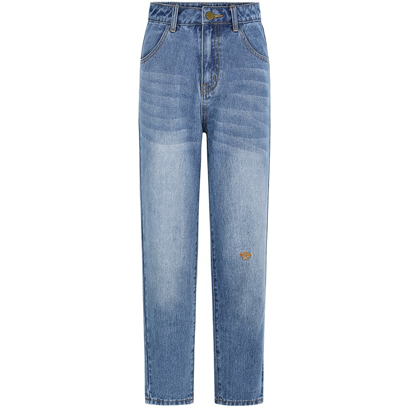 MG小象高腰牛仔褲女秋2018新款韓版顯瘦chic直筒褲學生寬松褲子潮
