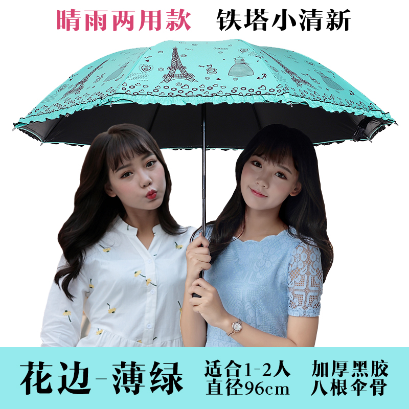 晴雨傘兩用韓國小清新學生太陽傘女黑膠防曬防紫外線三折疊遮陽傘