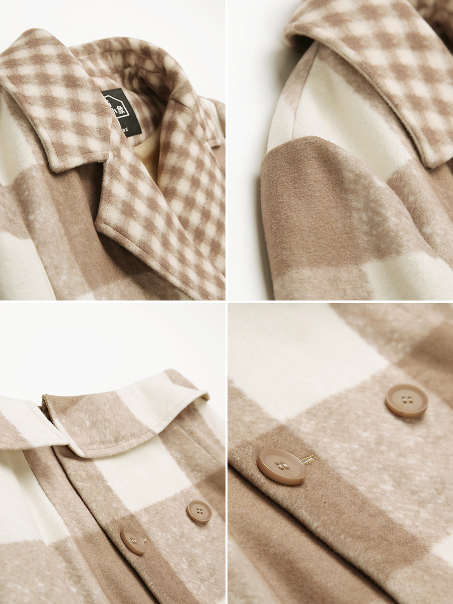 MG小象格子毛呢外套女秋冬新款高腰不規則短裙復古休閑呢子大衣潮