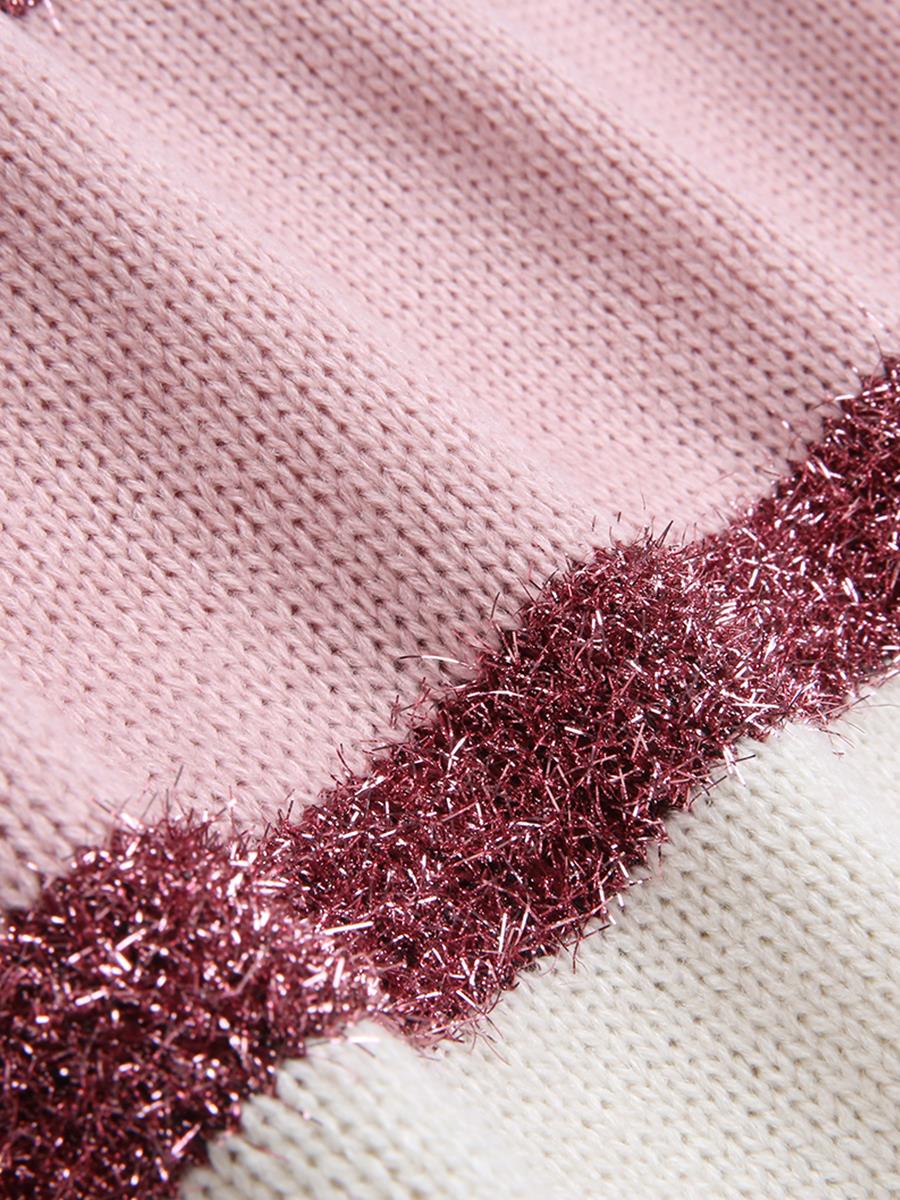 / MG小象亮絲條紋毛衣女2018新款v領套頭上衣冬季寬松針織毛線衣潮