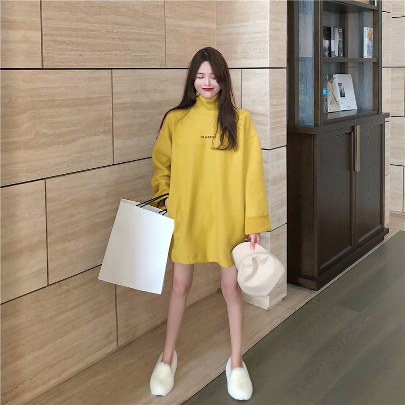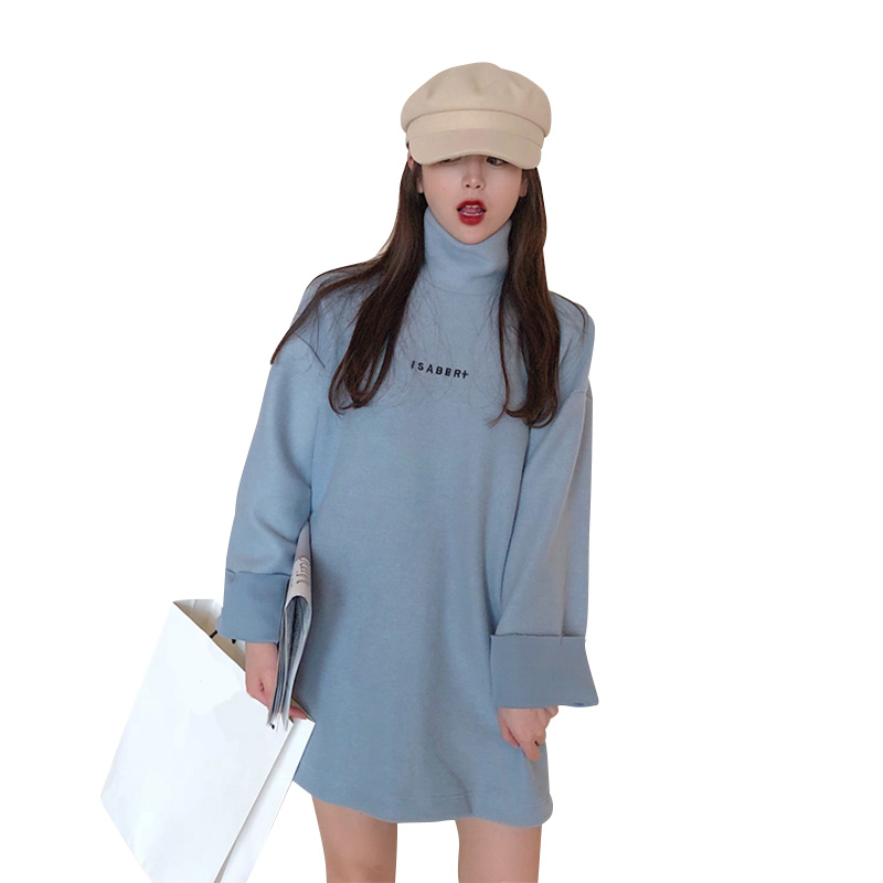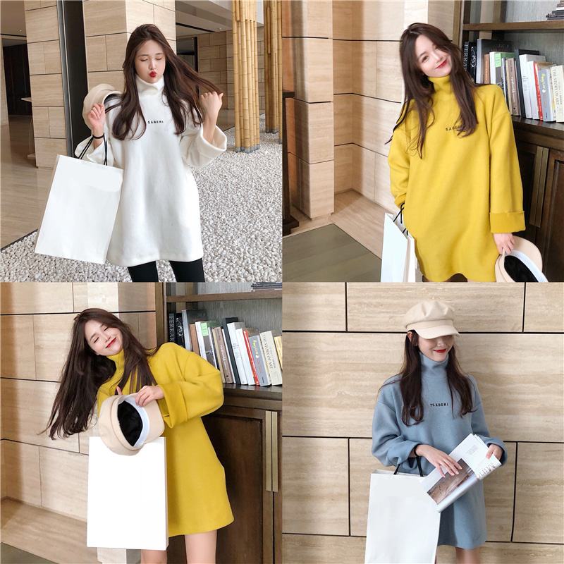 / 韓風秋冬新款加厚時尚寬松小清新上衣女裝百搭高領中長款字母衛衣