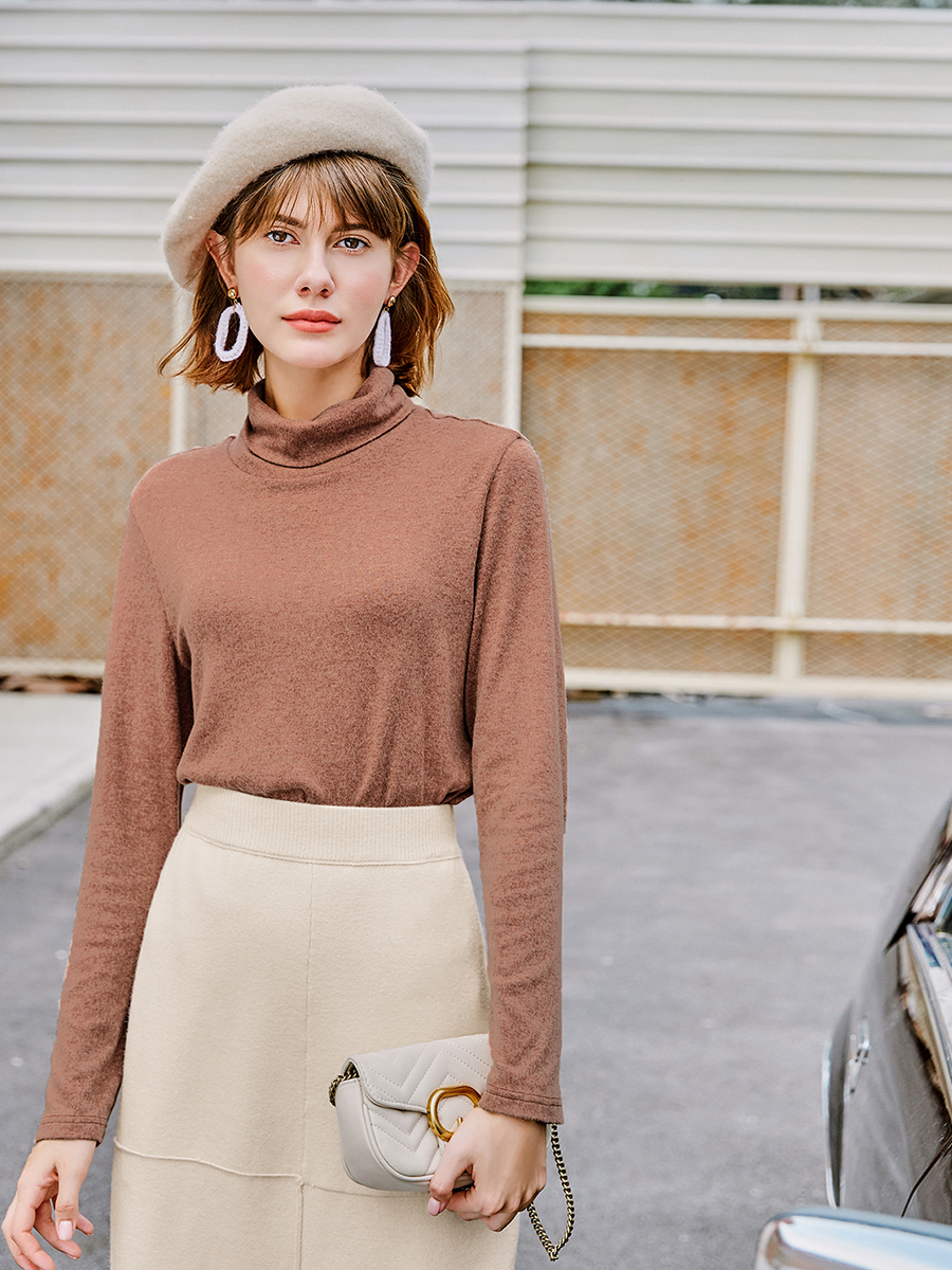 MG小象高領打底衫女秋冬2018新款韓版休閑內搭長袖T恤寬松上衣潮