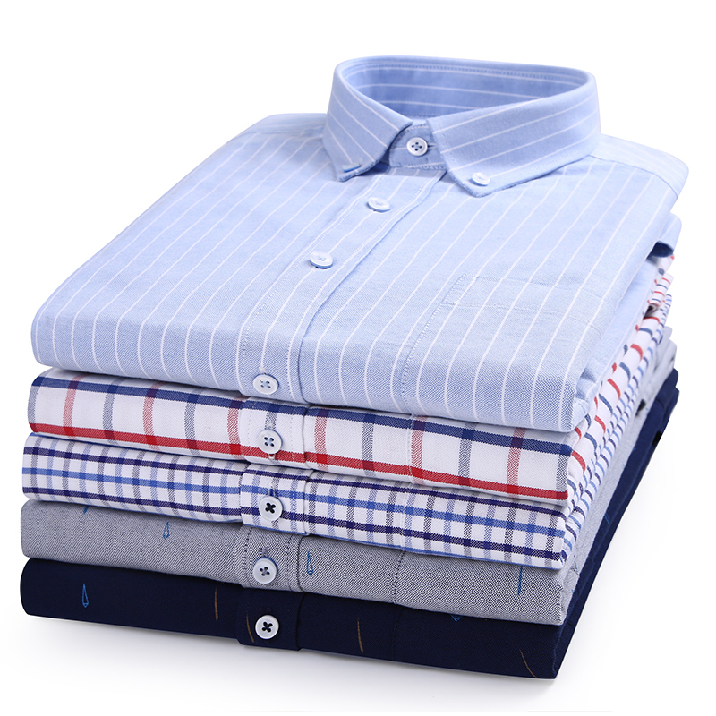 / 春款全棉牛津紡扣領男士襯衫商務休閑條紋長袖碎花純棉修身襯衣潮