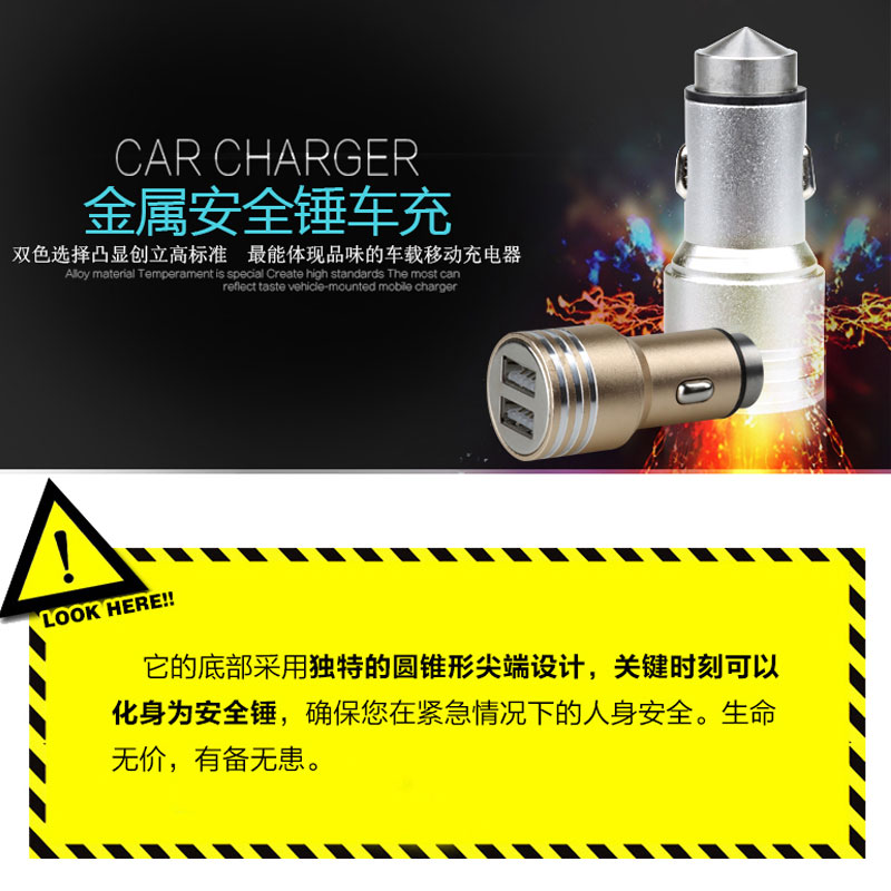 / 小鋼炮車載充電器雙USB金屬機身急速閃沖24A安全錘汽車通用批車充