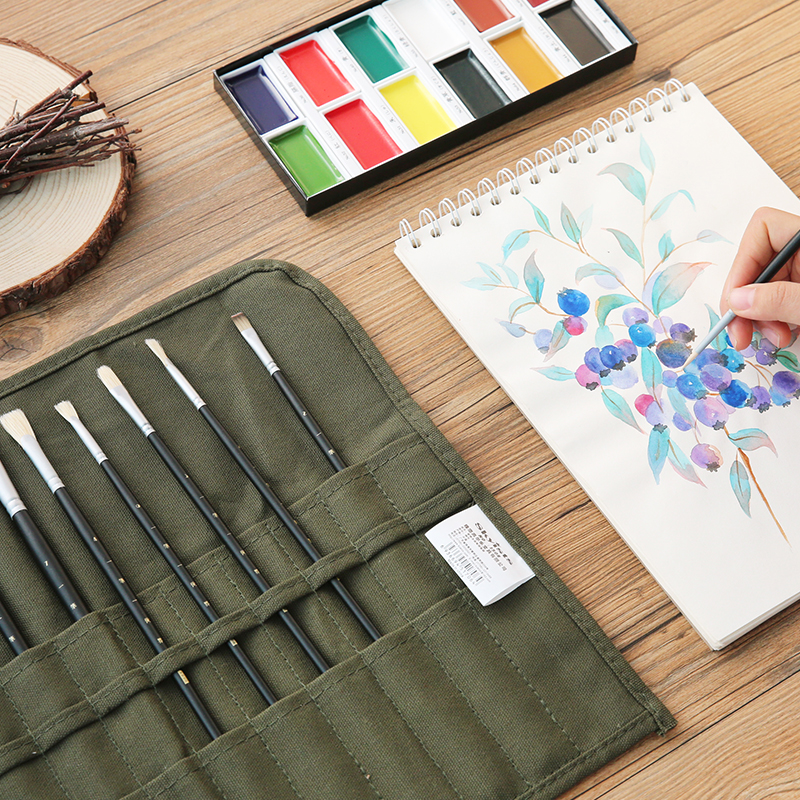 云木雜貨 簡約水粉畫筆簾 軍綠色便攜收納水彩筆油畫筆簾筆袋