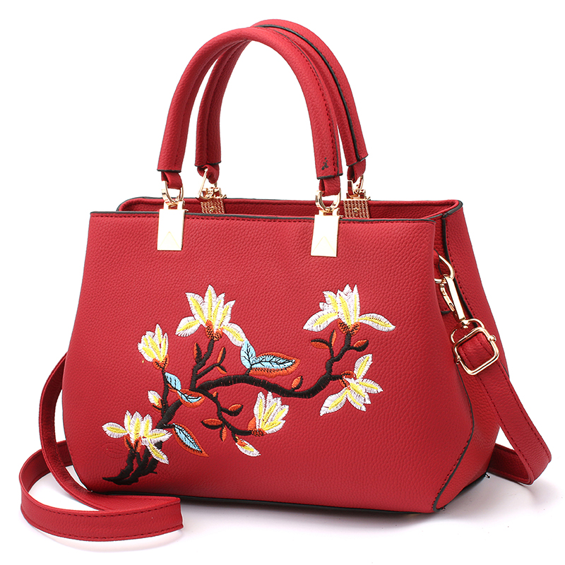 女士包包春季新款民族風刺繡手提包簡約單肩包休閑斜跨包女