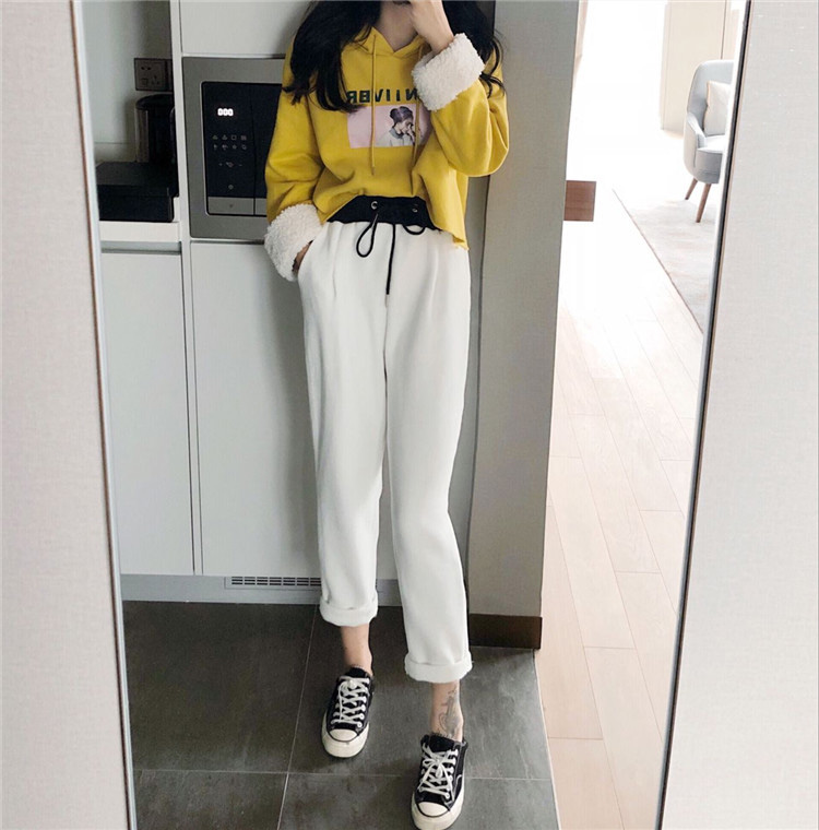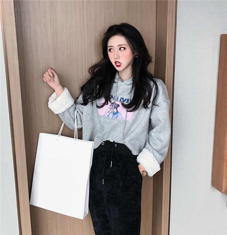 / 新款秋冬女裝兩件套袖口毛毛字母加絨連帽衛衣加絨休閑褲時尚套裝