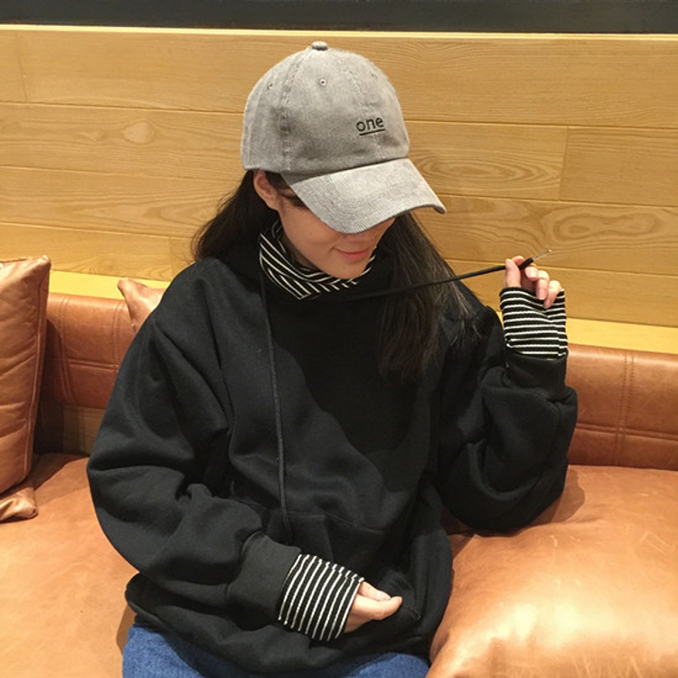 / 冬款韓國學院風假兩件拼接條紋高領連帽套頭加絨加厚衛衣女