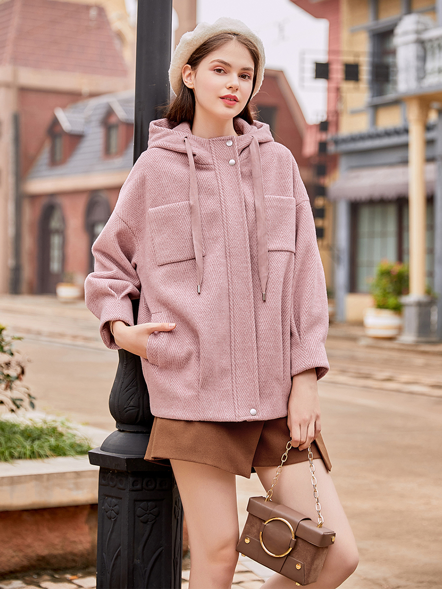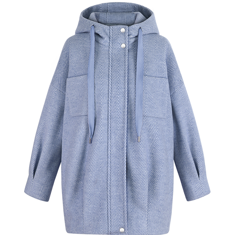 MG小象連帽毛呢外套女冬季2018新款韓版寬松學院風時尚呢子大衣潮