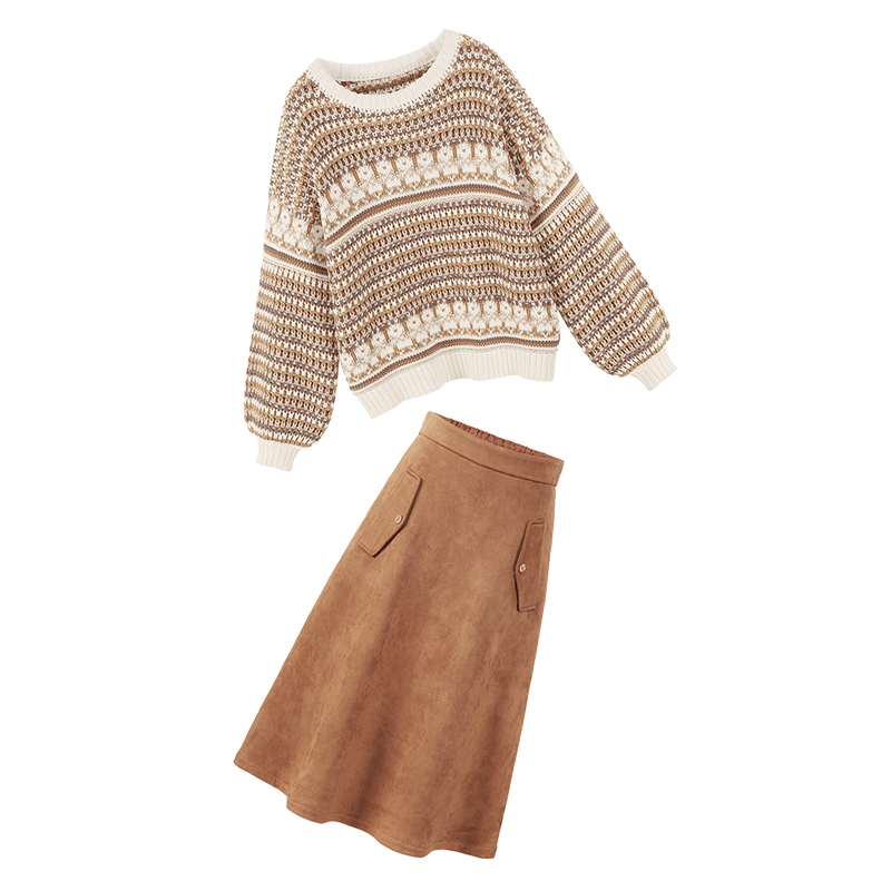 針織衫-條紋|半身裙-淺棕色|針織衫-條紋第二批 11.26-11.29發貨|半身裙-?棕色第二批 11.28-12.2