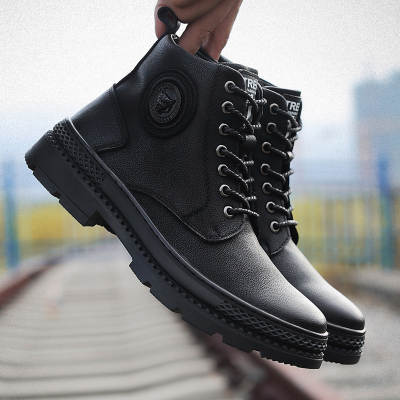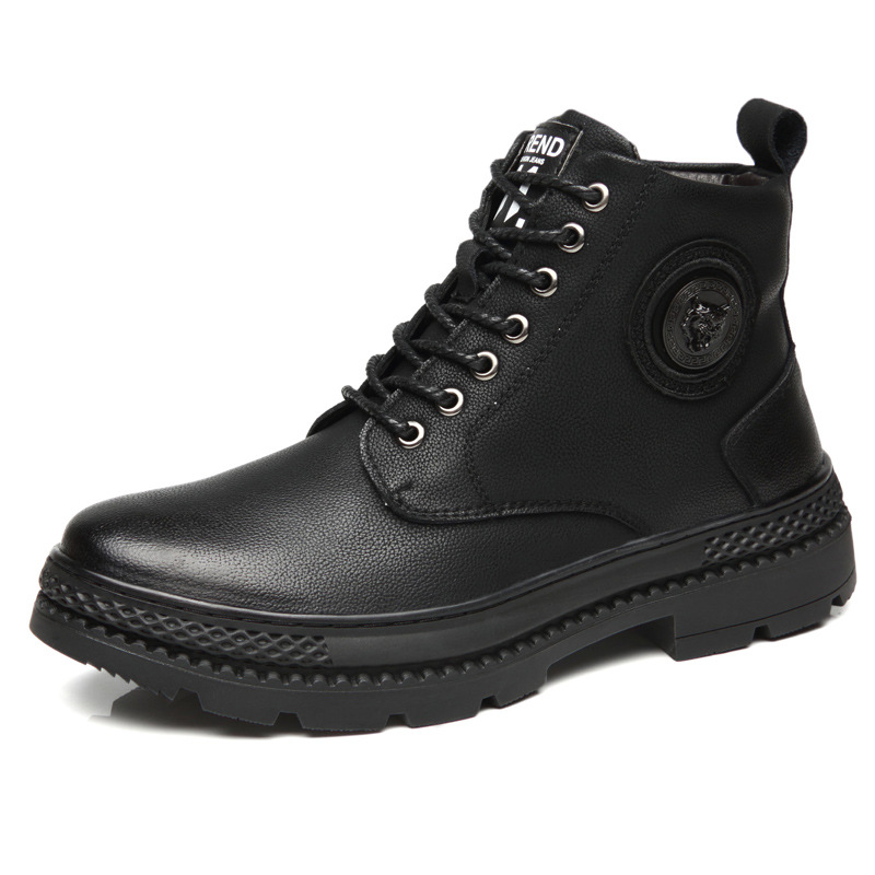 秋冬新款加絨保暖休閑潮男式皮靴馬丁靴男高幫真皮男鞋英倫風皮靴