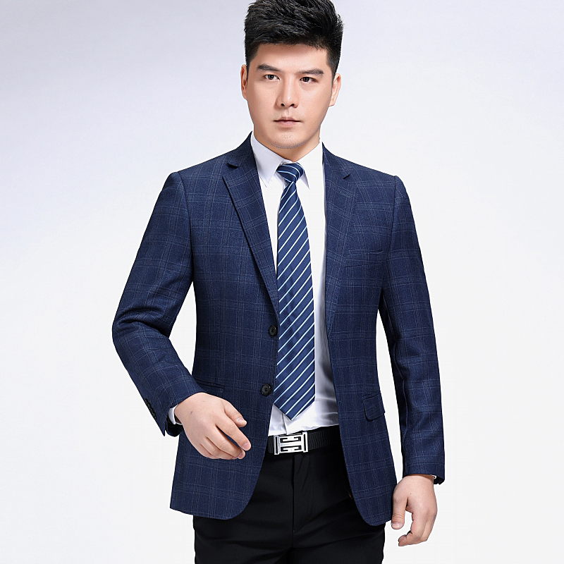 / 秋裝品牌中年男士羊毛免燙西服商務休閑男裝格子單件外套男上衣