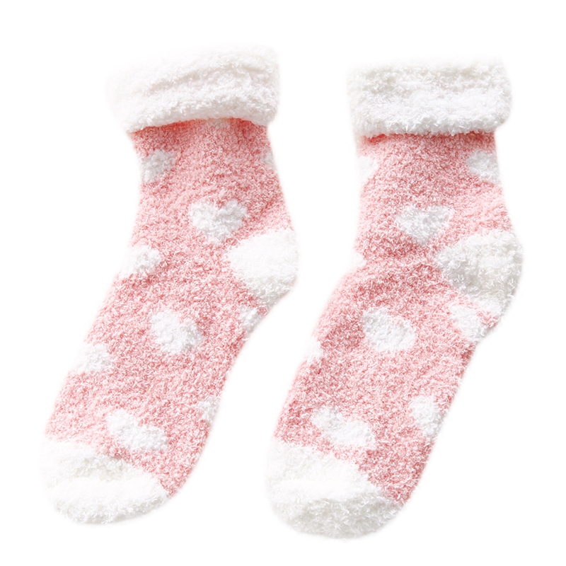 / 云木雜貨 冬季清新可愛甜美毛絨襪愛心圖案珊瑚絨襪保暖襪地板襪