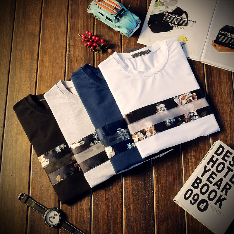2017新款長袖T恤男士潮流修身秋裝T恤圓領 大碼男