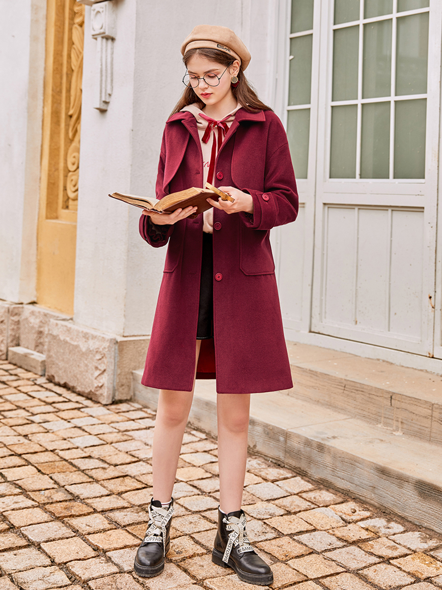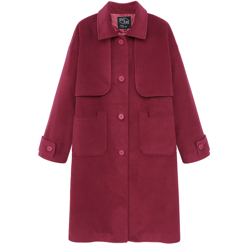 MG小象毛呢外套女中長款寬松冬季新款2018流行學院風紅色呢子大衣