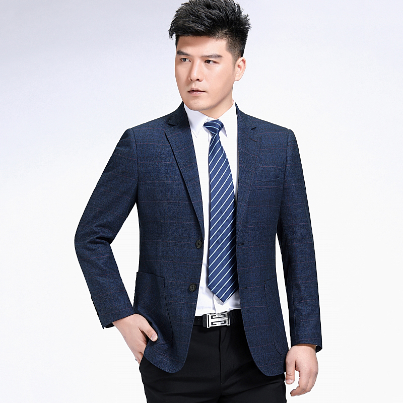 秋裝品牌中年男士羊毛免燙西服商務休閑男裝格子單件西裝外套上衣
