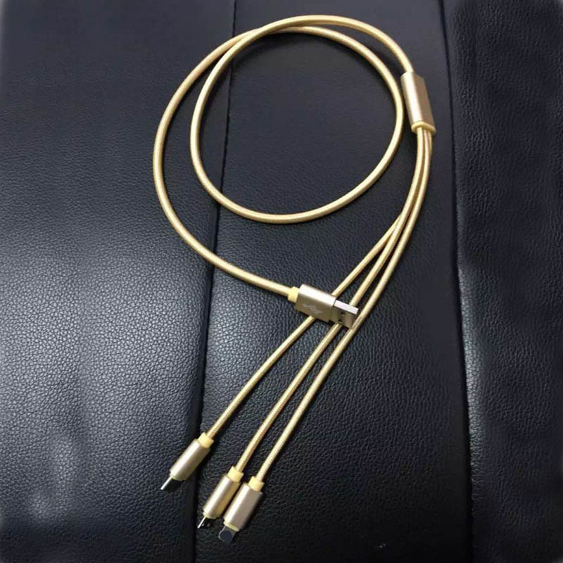 / 多功能一拖三數據線手機金屬編織線通用USB安卓Type-c充電線批 發