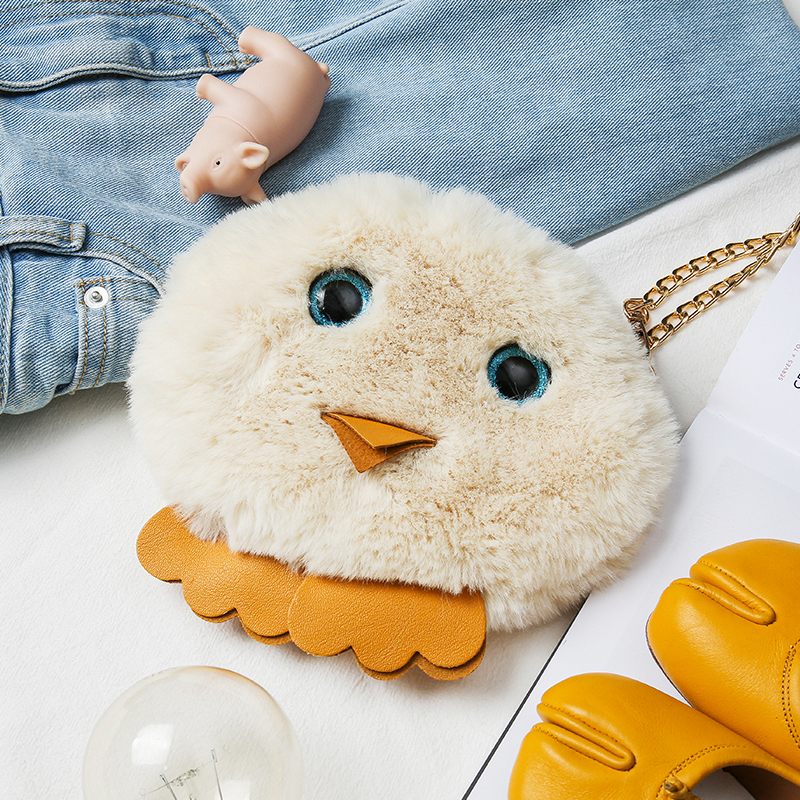 MG小象毛絨卡通可愛斜挎手提包秋冬新款潮流鏈條包學生時尚小包包