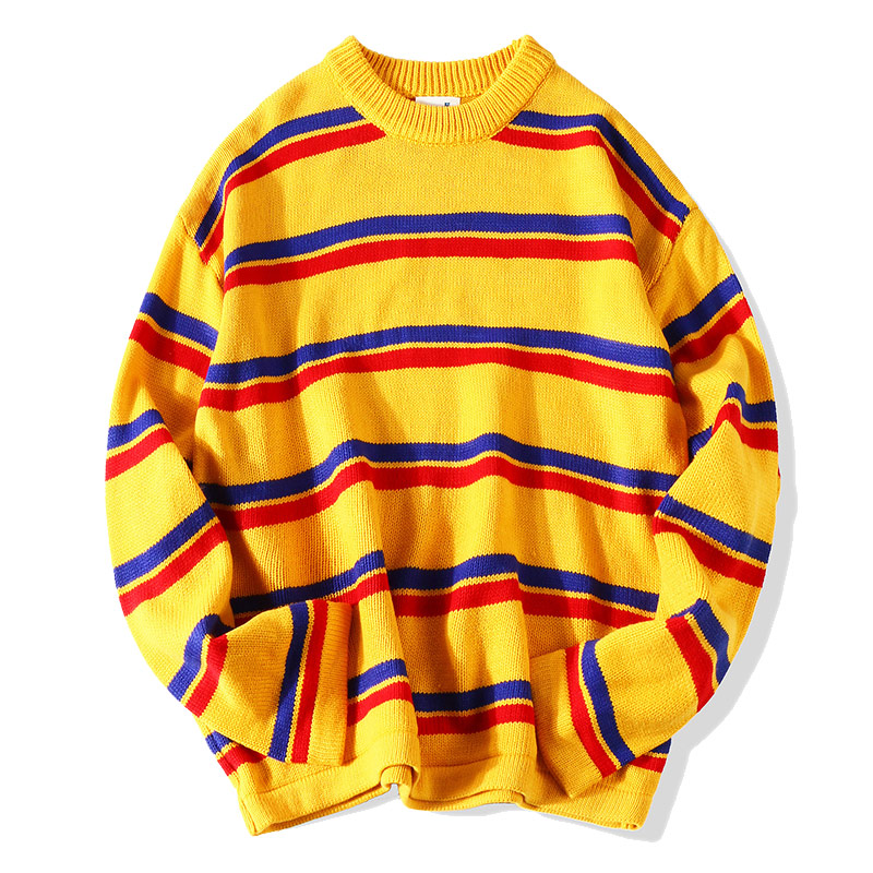 文藝男女店圓領男士針織衫冬季韓版原宿風毛衣男秋季潮流條紋外套