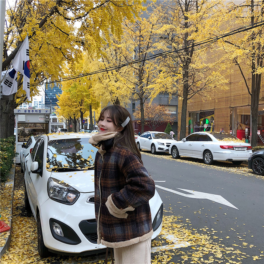 / 高領打底+復古加絨毛呢格子+系帶麻花針織褲套裝