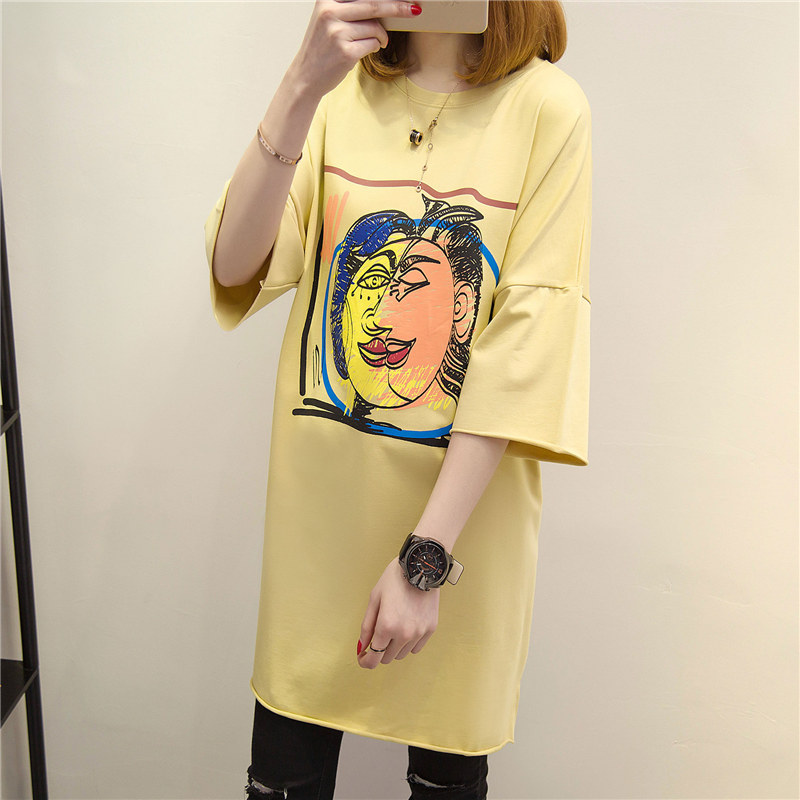 / 夏裝新款女裝韓版學生寬松套頭百搭上衣中長款白色t恤女短袖