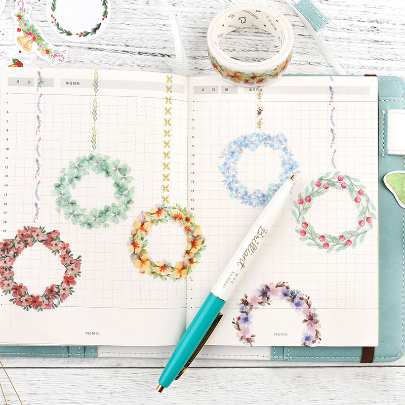 / 云木雜貨 清新可愛花環和紙膠帶清新印花多款裝飾DIY手賬本筆記本