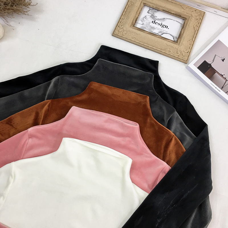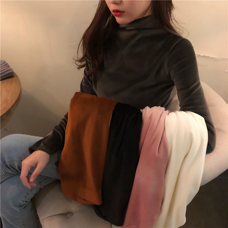 新款時尚秋冬韓版絲絨純色高領長袖T恤加絨加厚保暖打底衫上衣女